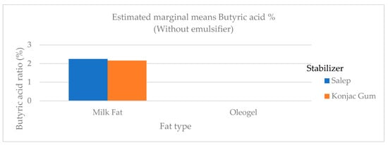 The variation in the butyric acid ratio of ice cream samples that included cream and oleogel.
