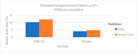 The variation in the stearic acid ratio of ice cream samples that included cream and oleogel.