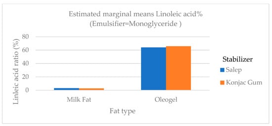 The variation in the linoleic acid ratio of ice cream samples that included cream and oleogel.