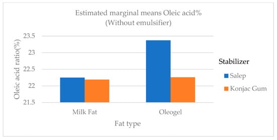 The variation in the oleic acid ratio of ice cream samples that included cream and oleogel.