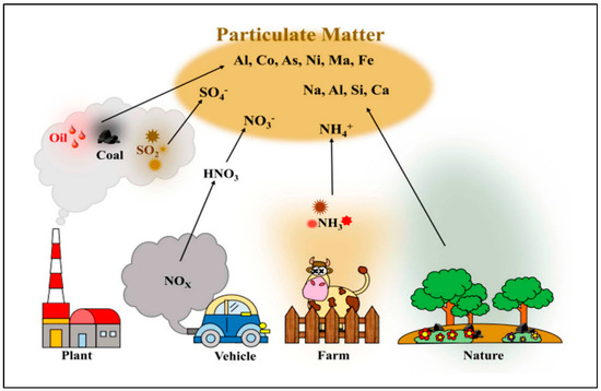 Schematic drawing of different sources of particulate matter in our environment. Adapted with permission from [92].