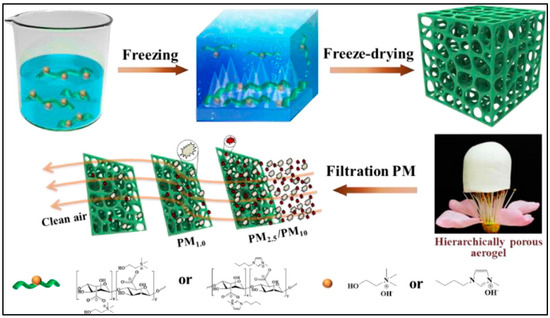 Schematic illustration of the fabrication of alginate-based aerogel for efficient removal of particulate matter. Adapted with permission from Wu et al. [131].