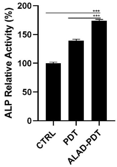 - Egli, R.J.; Schober, M.; Hempfing, A.; Ganz, R.; Hofstetter, W.; Leunig, M. Sensitivity of Osteoblasts, Fibroblasts, Bone Marrow Cells, and Dendritic Cells to 5-Aminolevulinic Acid Based Photodynamic Therapy. J. Photochem. Photobiol. B 2007, 89, 70–77. [Google Scholar] [CrossRef]