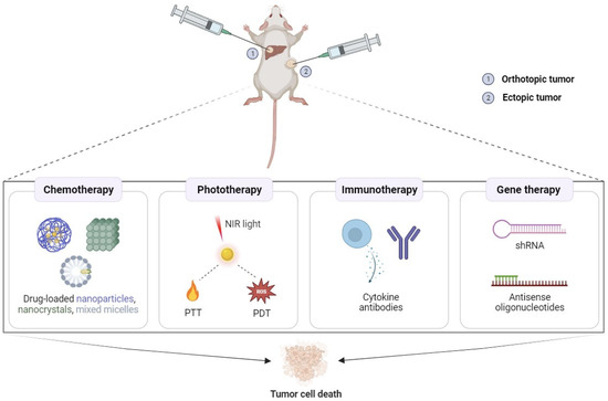 The proof-of-concept of poloxamer hydrogels for local tumor administration has been demonstrated by the growth inhibition of several tumors in different mouse models. Nevertheless, it is noteworthy that most tumor models were established in mice through the subcutaneous inoculation of cancer cells. Subcutaneous (or ectopic) tumors might be advantageous to monitoring tumor growth and performing local injections, but fail to mimic the tumor microenvironment. Despite being more clinically relevant because tumor xenografts are placed in the tissue/organ of origin, orthotopic mouse models still do not reflect the size of tumors that develop naturally in patients. Moreover, potential adverse effects in cancer patients with intact immunity may go unnoticed if studies in immunodeficient animals are the case [53].