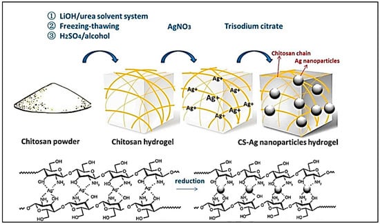 - Xie, Y.; Liao, X.; Zhang, J.; Yang, F.; Fan, Z. Novel chitosan hydrogels reinforced by silver nanoparticles with ultrahigh mechanical and high antibacterial properties for accelerating wound healing. Int. J. Biol. Macromol. 2018, 119, 402–412. [Google Scholar] [CrossRef] [PubMed]