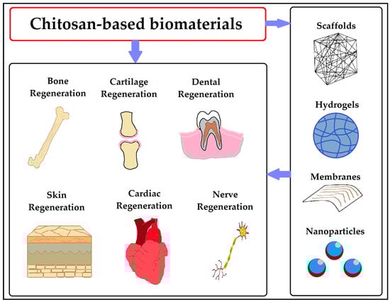 - Kim, Y.; Zharkinbekov, Z.; Raziyeva, K.; Tabyldiyeva, L.; Berikova, K.; Zhumagul, D.; Temirkhanova, K.; Saparov, A. Chitosan-Based Biomaterials for Tissue Regeneration. Pharmaceutics 2023, 15, 807. [Google Scholar] [CrossRef]