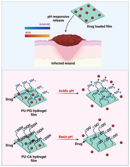- Jiang, H.; Ochoa, M.; Waimin, J.F.; Rahimi, R.; Ziaie, B. A pH-regulated drug delivery dermal patch for targeting infected regions in chronic wounds. Lab Chip 2019, 19, 2265–2274. [Google Scholar] [CrossRef]