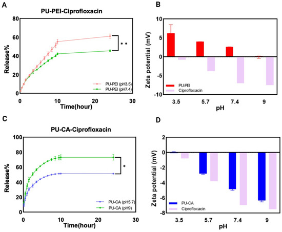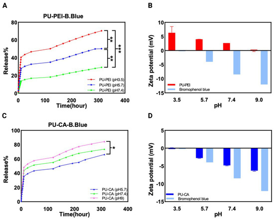 - Laurano, R.; Boffito, M.; Abrami, M.; Grassi, M.; Zoso, A.; Chiono, V.; Ciardelli, G. Dual stimuli-responsive polyurethane-based hydrogels as smart drug delivery carriers for the advanced treatment of chronic skin wounds. Bioact. Mater. 2021, 6, 3013–3024. [Google Scholar] [CrossRef]
