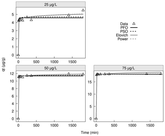 - Largitte, L.; Pasquier, R. A review of the kinetics adsorption models and their application to the adsorption of lead by an activated carbon. Chem. Eng. Res. Des. 2016, 109, 495–504. [Google Scholar] [CrossRef]