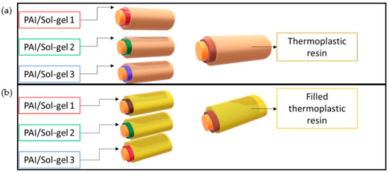 - The PAI + PAI/Sol–gel 2 + Filled thermoplastic wires showed a higher performance in the peel test.