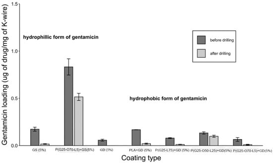 - Vester, H.; Wildemann, B.; Schmidmaier, G.; Stöckle, U.; Lucke, M. Gentamycin delivered from a PDLLA coating of metallic implants: In Vivo and in vitro characterisation for local prophylaxis of implant-related osteomyelitis. Injury 2010, 41, 1053–1059. [Google Scholar] [CrossRef]