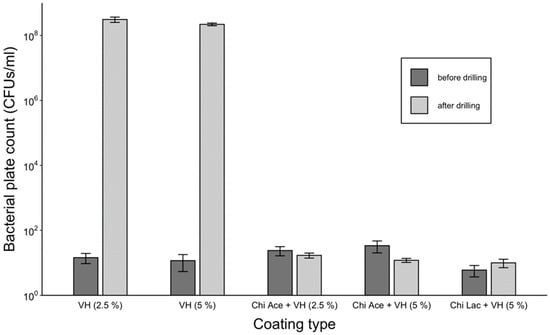 4.12. Antimicrobial Efficacy of PGMA-Based Copolymer and Chitosan Coatings