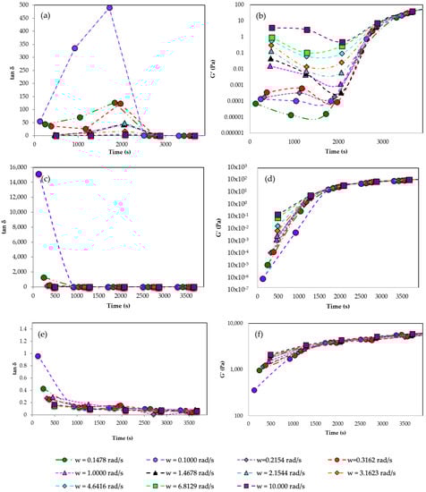 - Chambon, F.; Winter, H.H. Linear viscoelasticity at the gel point of a crosslinking PDMS with imbalanced stoichiometry. J. Rheol. 1987, 31, 683–697. [Google Scholar] [CrossRef]