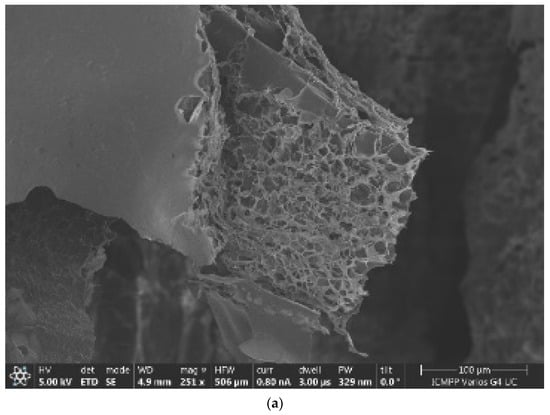 For an exact comparison to a familiar xerogel, more chitosan xerogel reference specimens were prepared under similar conditions to the hydrogels mentioned in paragraph 5, which were labeled with the X index. More exactly, we have some SEM images of the specimens that were experimentally realized, images of several different xerogels, and images of one xerogel with recovered mercury.