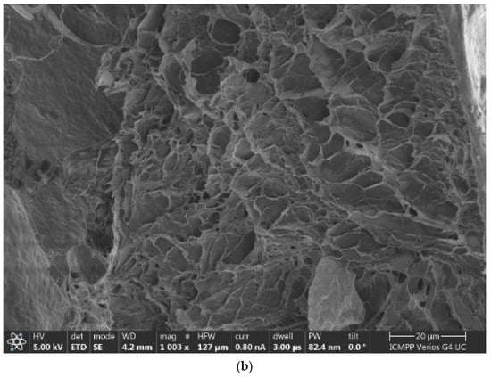 Note that the SEM magnification (M) is defined as the ratio of the length measured from the SEM monitor—Lm—to the same length measured on the sample—Ls. M equals Lm over Ls. The length measured can be anything from the size of a single pixel all the way up to the entire horizontal or vertical field of view. A detector for secondary electrons, which is standard for all basic SEMs, records the topography of the surface under observation with a resolution in the order of 1–2 nanometers and a magnification range from 10× to 5,001,000×. In our article, in the two SEM images from Figure 8, we have the following magnifications: