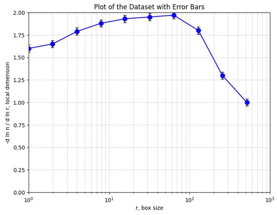 Figure 14 shows a graphic representation of the local fractal dimension values (with error bars) as a function of box size, r, obtained using the box-counting method.