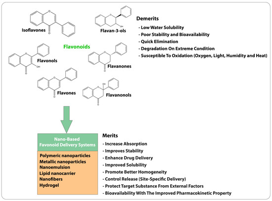 This review will provide an overview of flavonoids and explore how nanoencapsulation methods can improve their therapeutic effects. At the end of the review, we discuss examples of nanoformulation-loaded flavonoids that have been developed.