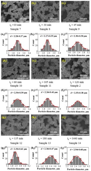 Similarly, all the silica particles within the aerogel Samples 7–14 (see Figure 5(a1–i1)) were also spherical and loosely linked, exhibiting inherent “pearl necklace-like” microstructures. There was little difference between the particle sizes (2.24–2.54 μm, see Figure 5(a2–i2)) within the aerogel samples.