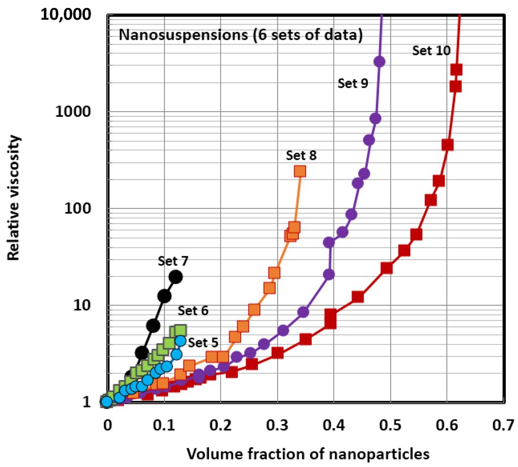Six sets of experimental data for the viscosity of nanosuspensions.
