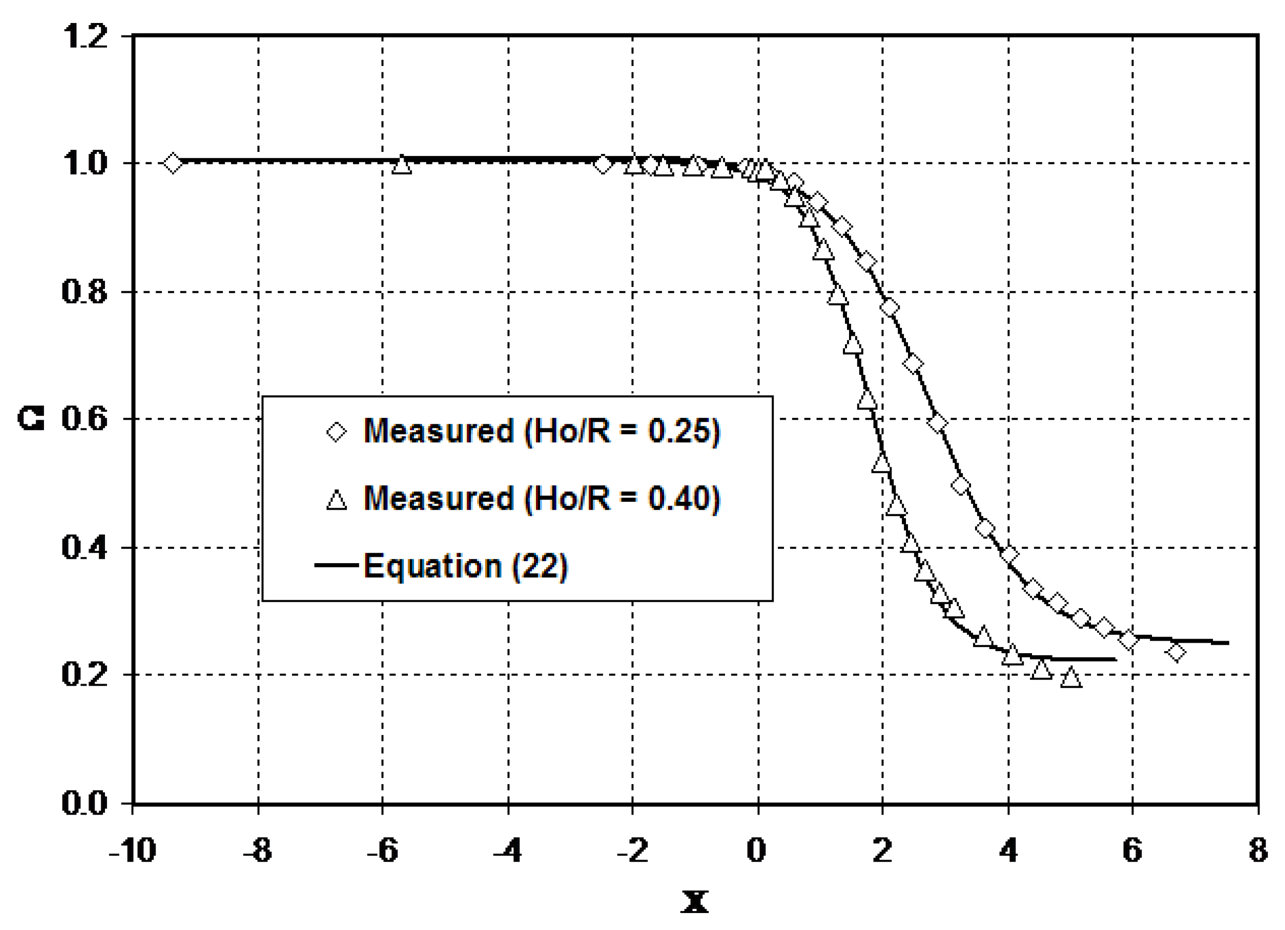 Rewriting Equation (8) for flow in a horizontal bed short-throated flume ( and ) and then inserting the resulting expression into Equation (19) yields the following equation: