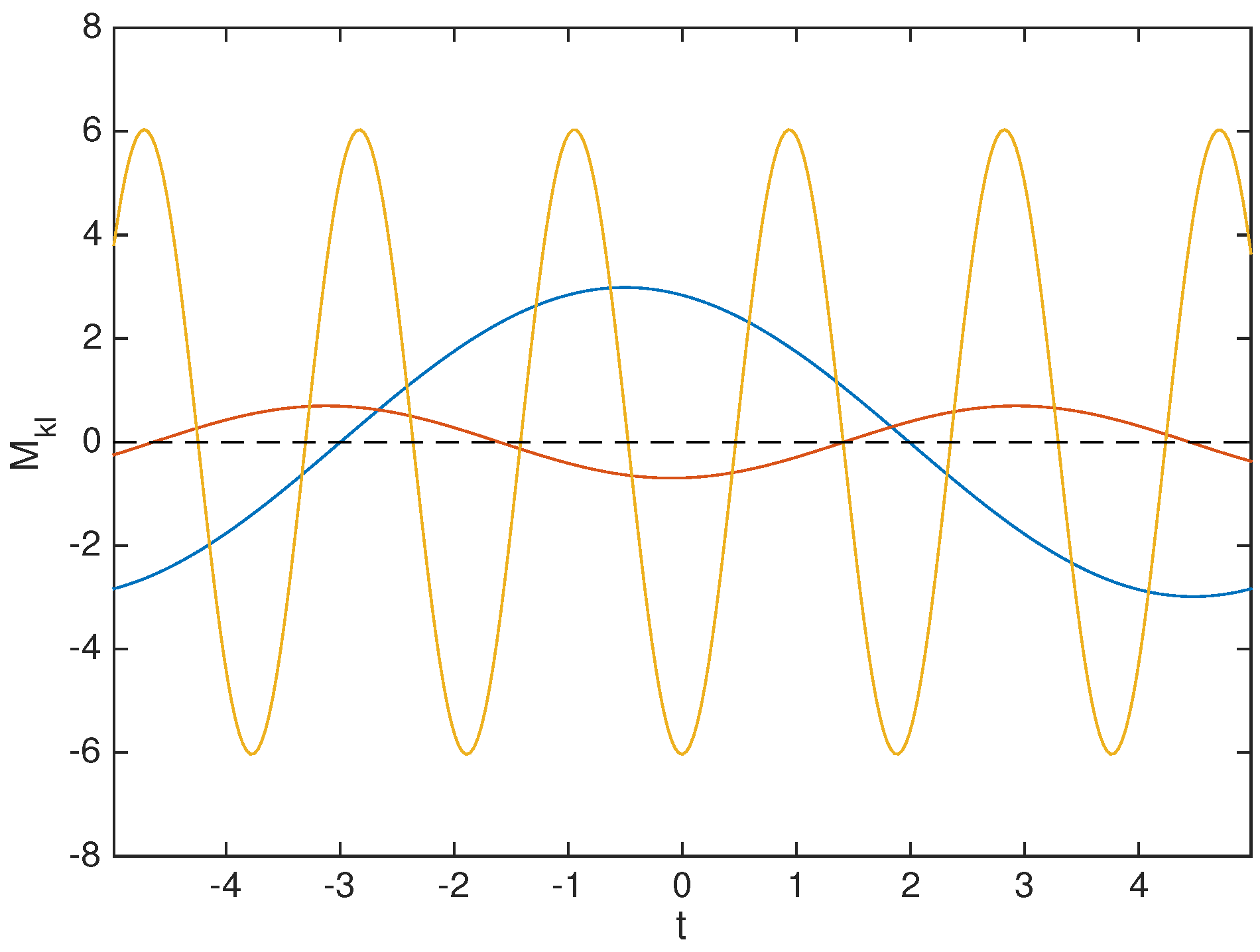 An obvious observation from (35) is that the leading-order tracer flux is simply the fluid flux multiplied by the constant . Thus it too exhibits sinusoidal behavior if , with amplitude . Moreover, if —just as for the fluid flux—the tracer flux also is zero. Therefore, in obtaining the behavior of flux of a tracer that would be conserved by the dominant flow (6), it suffices to simply examine the fluid flux.