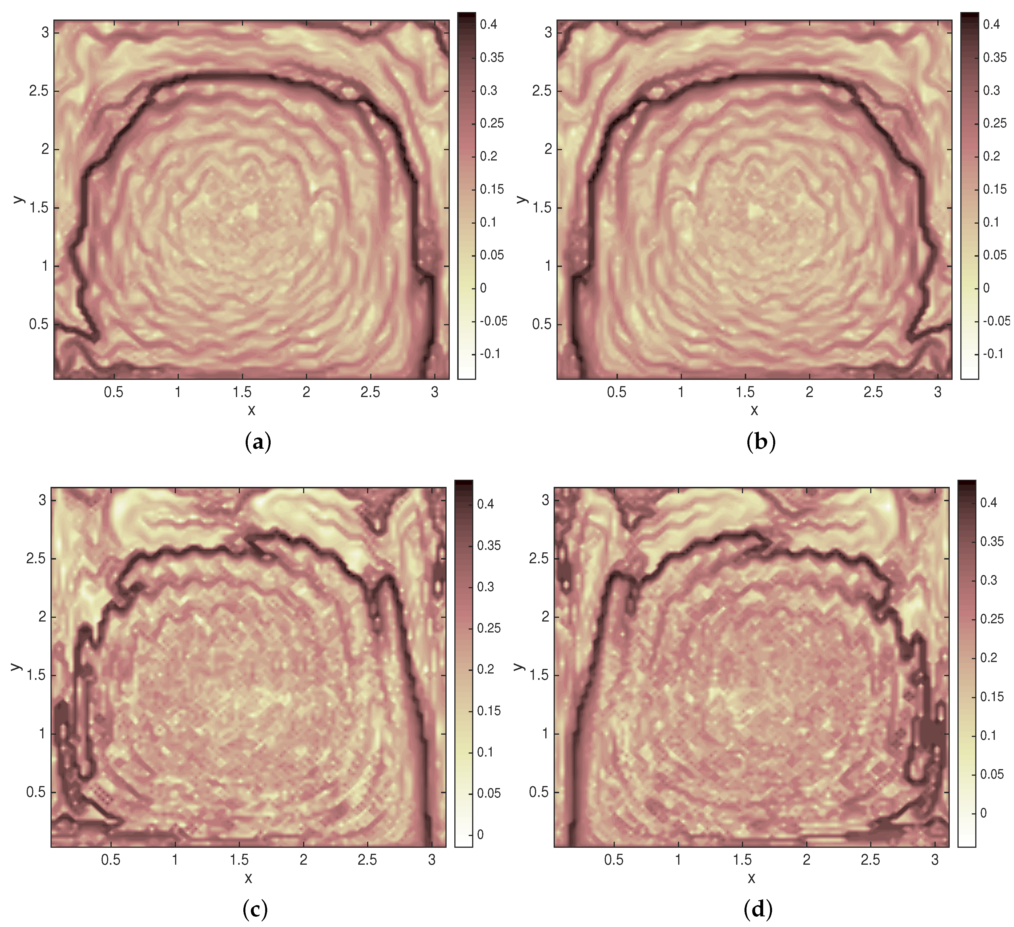 - Brown, M.; Samelson, R. Particle motion in vorticity-conserving two-dimensional incompressible flows. Phys. Fluids 1994, 6, 2875–2876. [Google Scholar] [CrossRef]