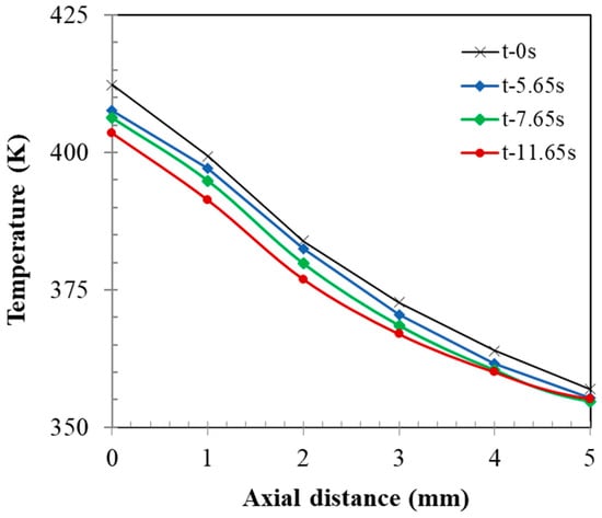 Temperature profile at different axial distances with 1 mm interval at different time instances.