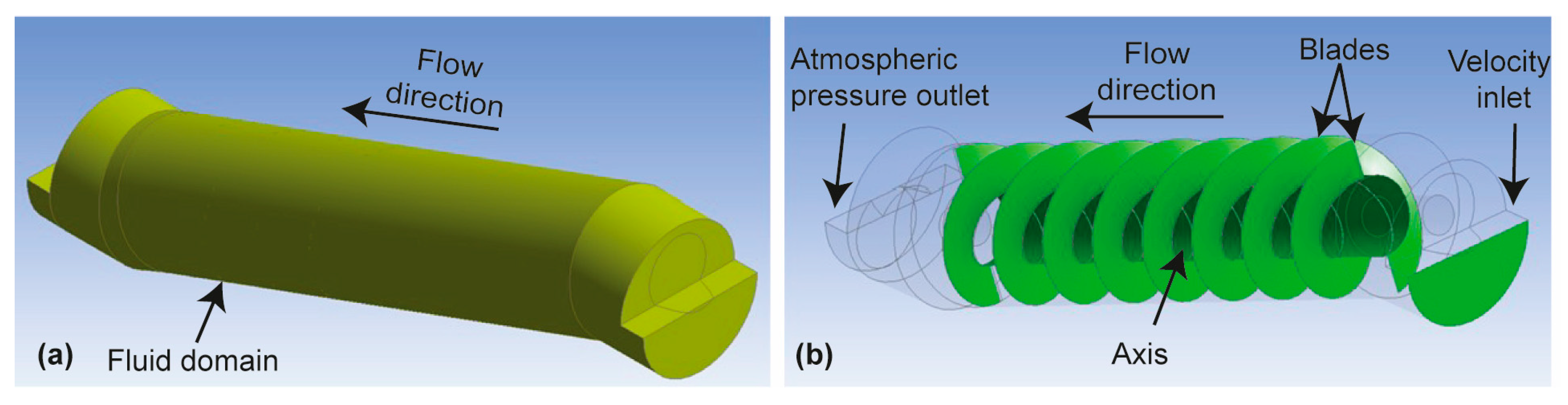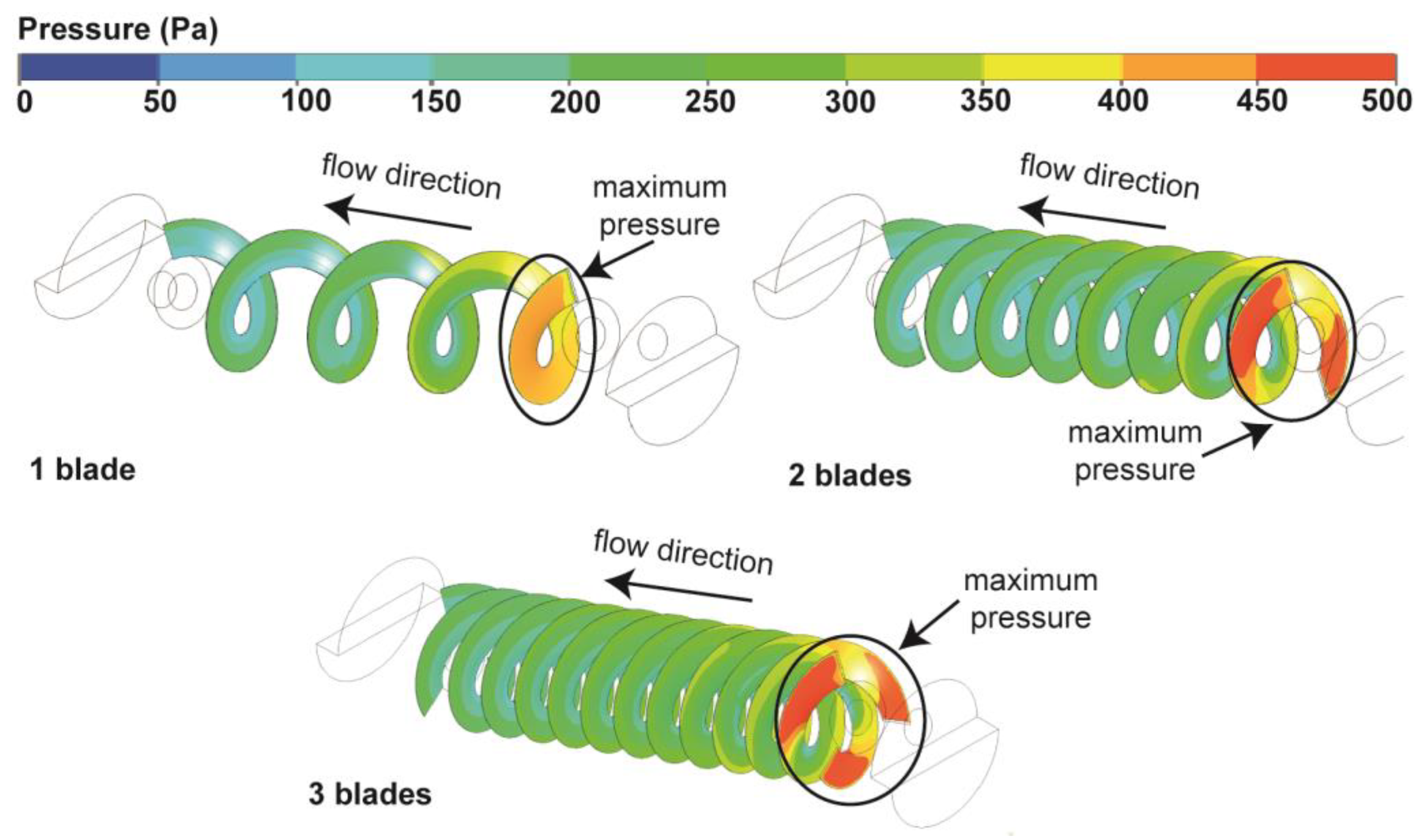 - Stergiopoulou, A.; Kalkanni, E. Investigating the hydrodynamic behaviour of innovative Archimedes screw generators. Energy 2013, 17, 498–504. [Google Scholar]