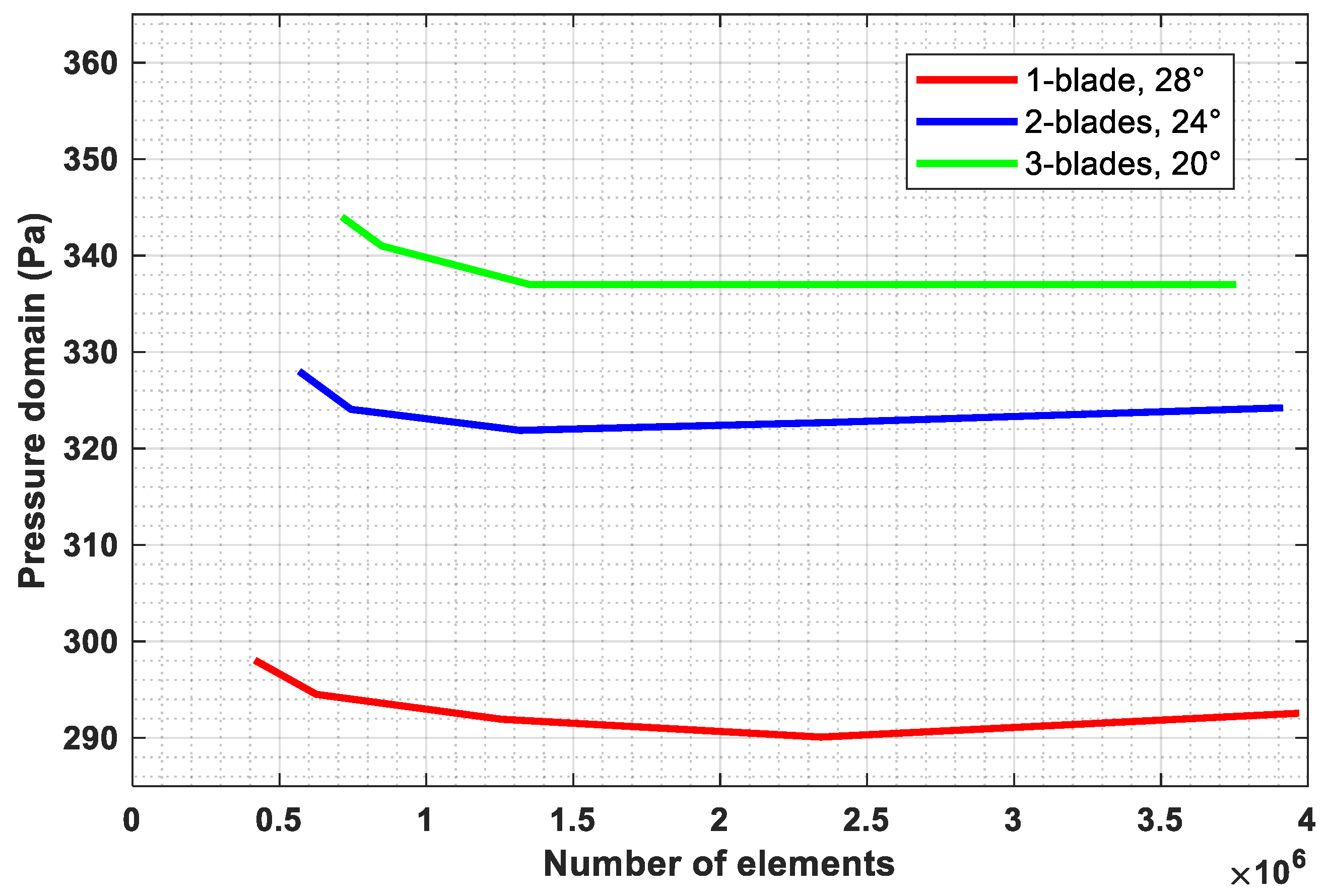 Blades | Total Pressure (Pa) | Static Pressure (Pa) | Dynamic Pressure (Pa) |