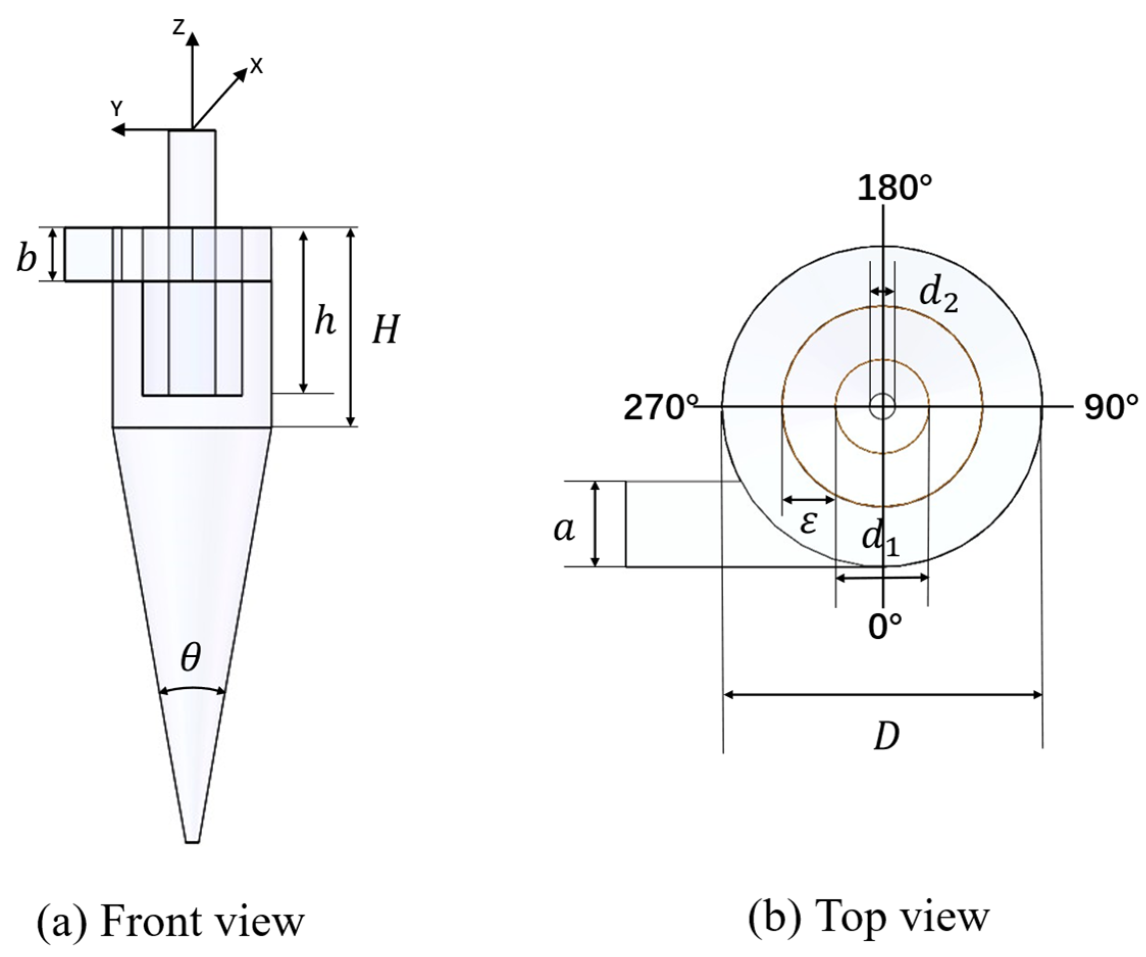 - Dianyu, E.; Hu, H.; Ye, Q.; Tan, C.; Cui, J.; Zhou, Z.; Zou, R.; Yu, A.; Kuang, S. Multi-objective optimization of hydrocyclones inlet configurations for improving separation performance. Powder Technol. 2025, 456, 120772. [Google Scholar] [CrossRef]