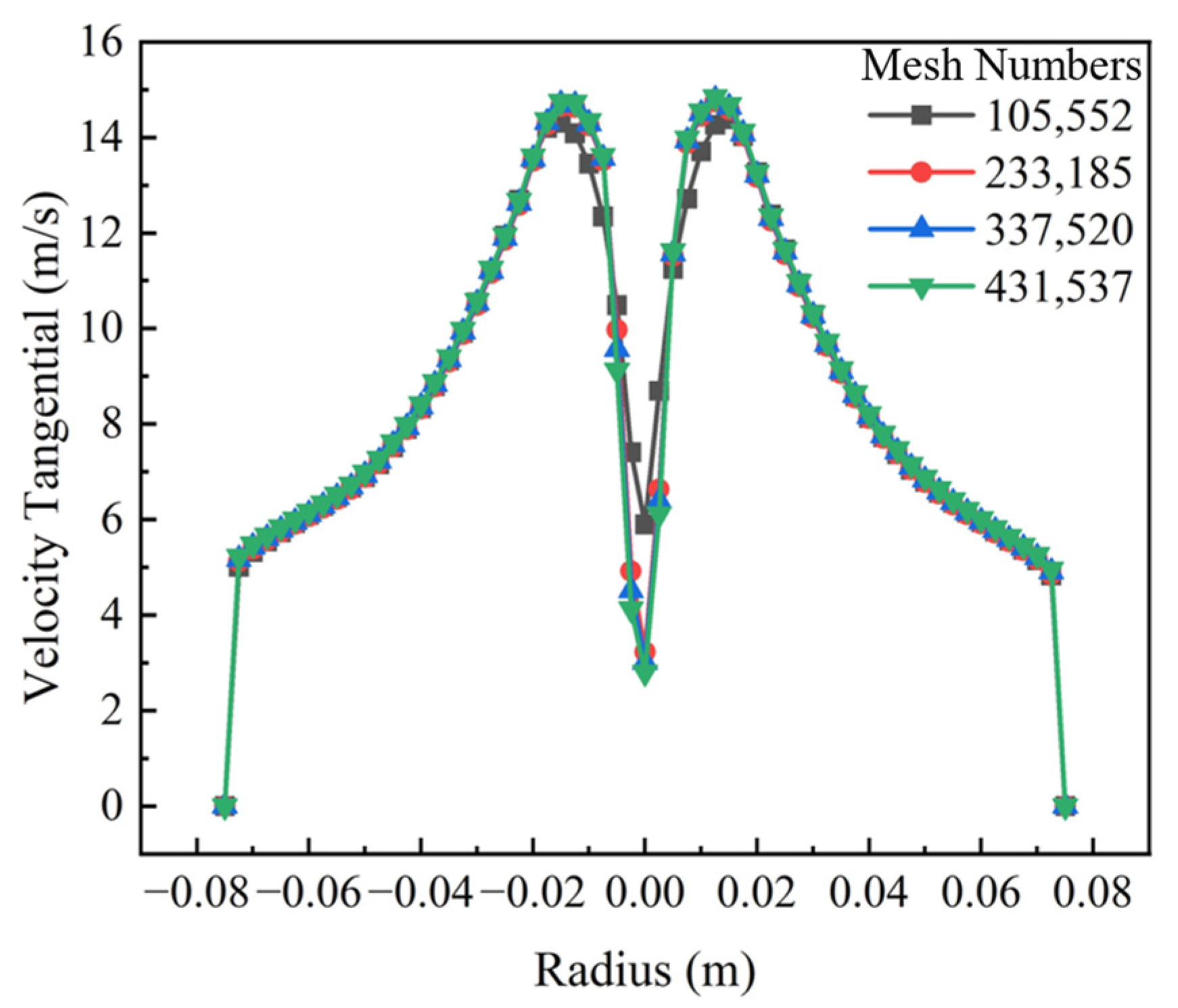 - Zhang, Q.; Chen, W.; Liu, H. Numerical study on gas–liquid separation of two-phase swirling flow based on the Eulerian-Eulerian approach and RSM turbulence model. Ann. Nucl. Energy 2025, 217, 111334. [Google Scholar] [CrossRef]
