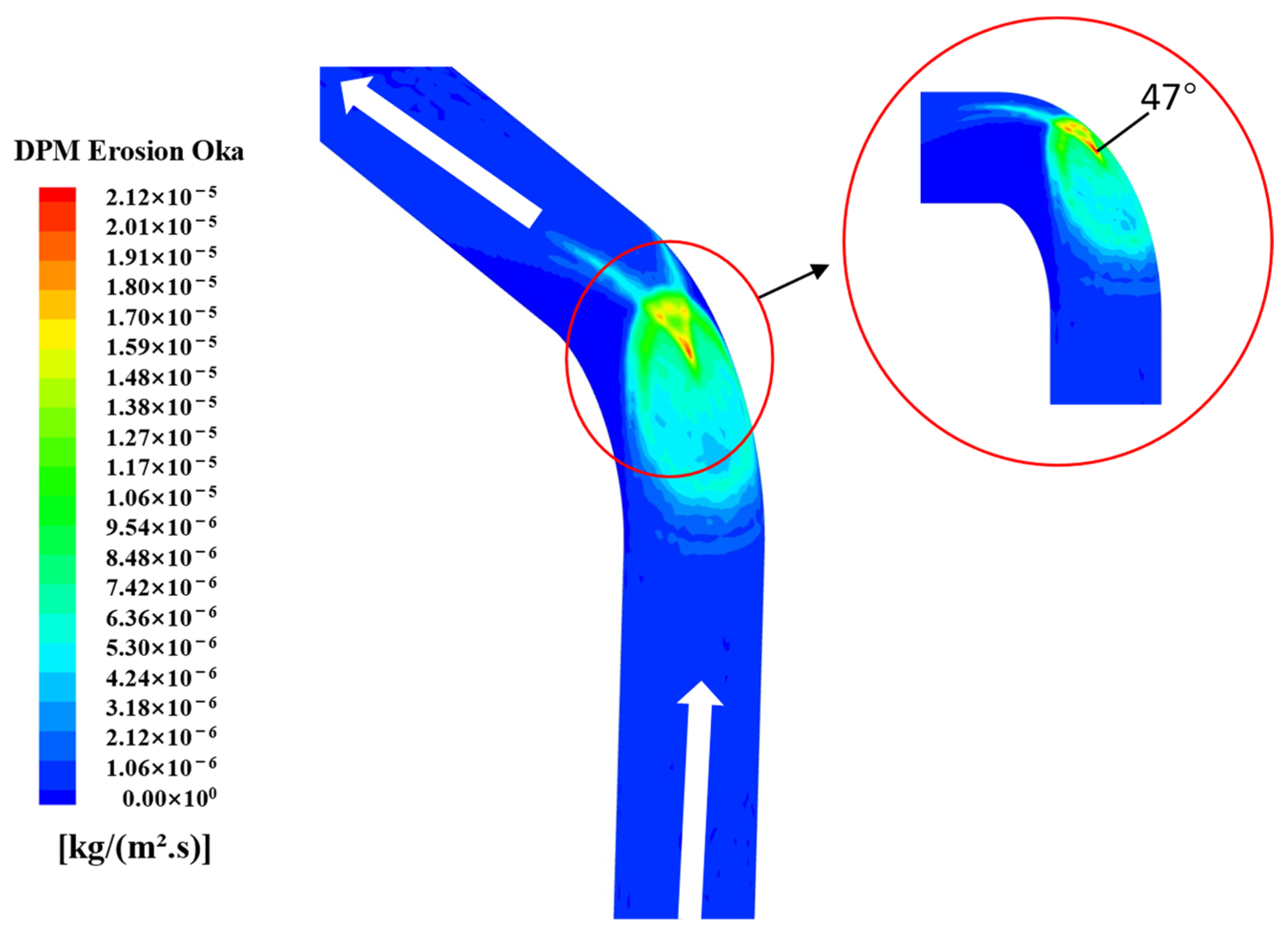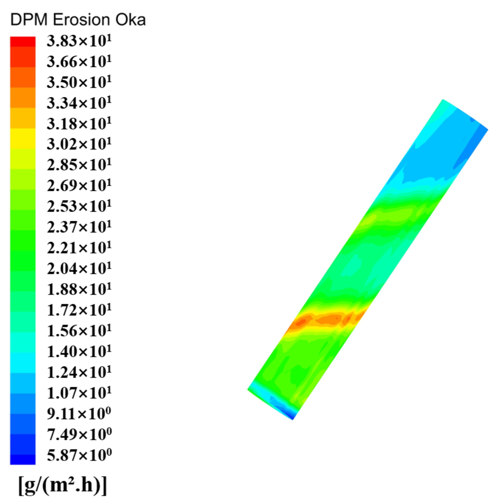 - Vieira, R.E.; Mansouri, A.; McLaury, B.S.; Shirazi, S.A. Experimental and computational study of erosion in elbows due to sand particles in air flow. Powder Technol. 2016, 288, 339–353. [Google Scholar] [CrossRef]