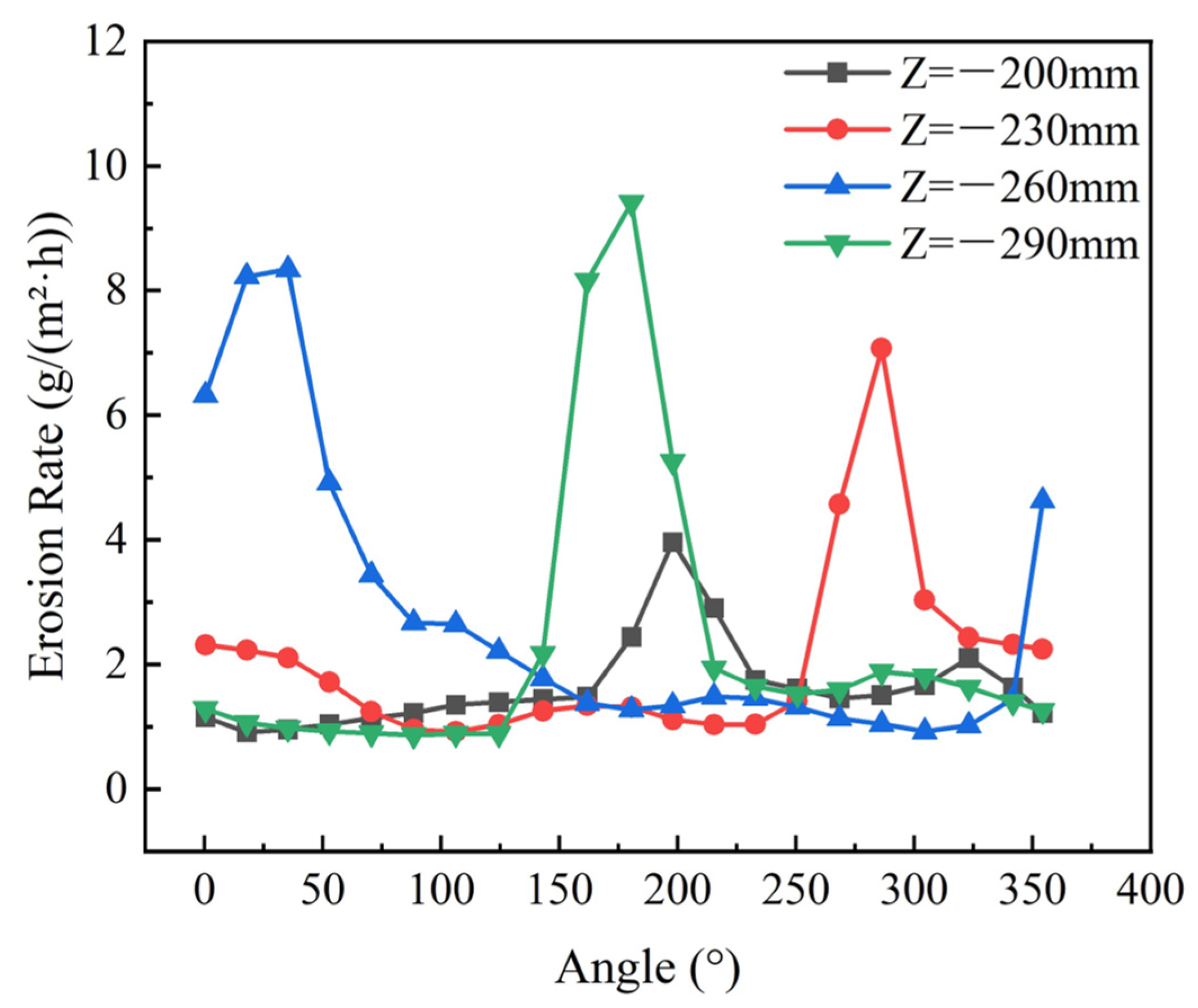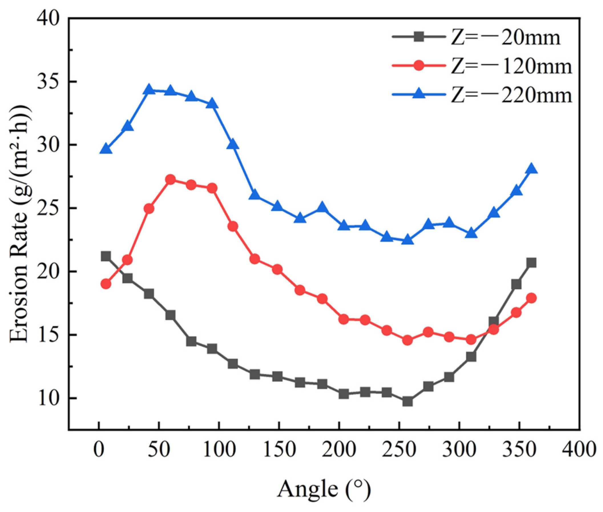 - Lin, Z.; Yu, H.; Yu, T.; Zhu, Z. Numerical study of solid–liquid two-phase flow and erosion in ball valves with different openings. Adv. Powder Technol. 2022, 33, 103542. [Google Scholar] [CrossRef]