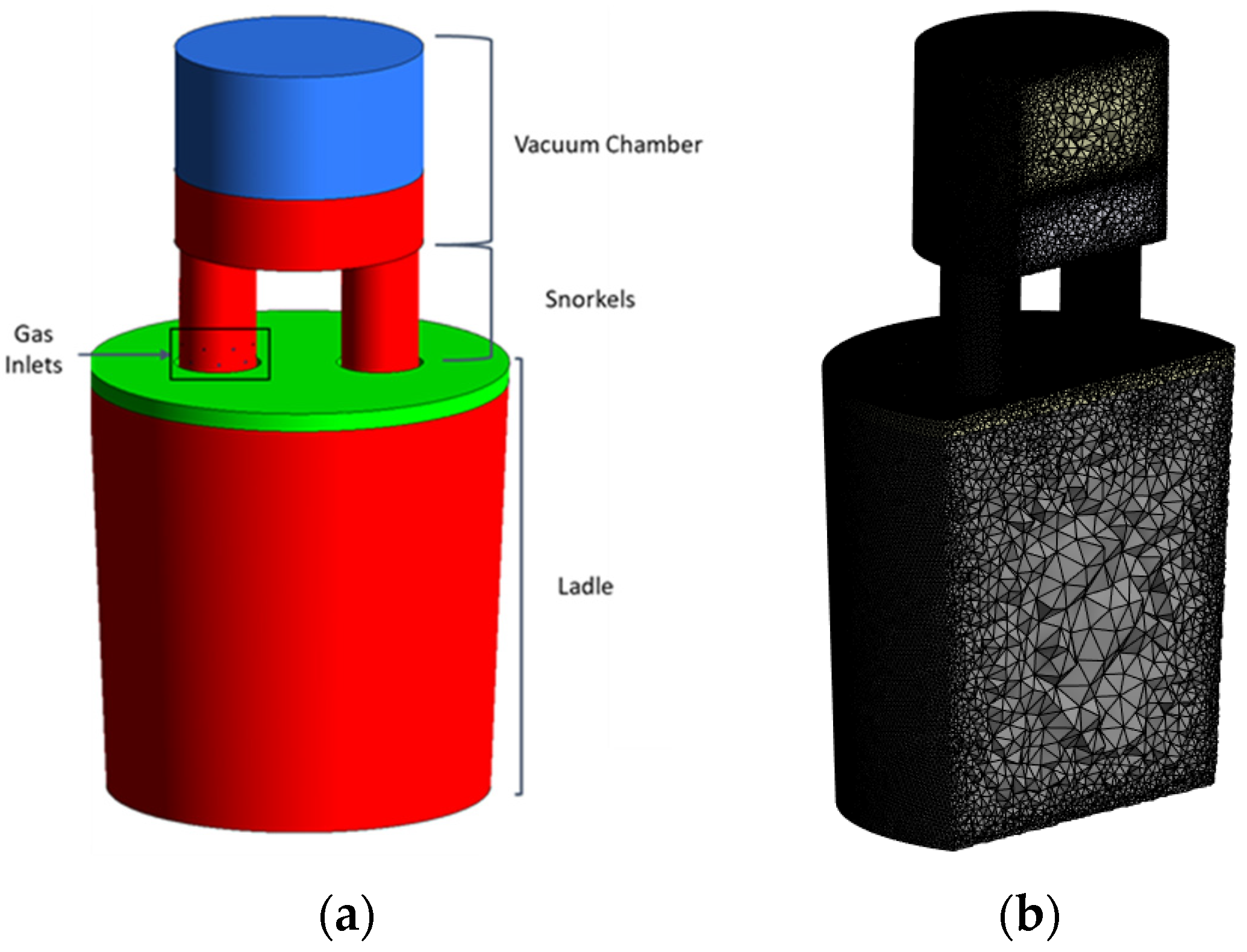 21], as heat loss during the RH treatment is negligible compared with the short refining time. Accordingly, the system is treated isothermal with no chemical reactions, focusing solely on the flow-induced mixing behavior.