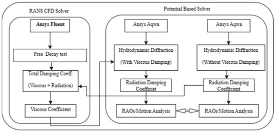 Overall numerical workflow for the hybrid methodology, combining CFD-based viscous damping estimation with potential-flow simulations for motion analysis.