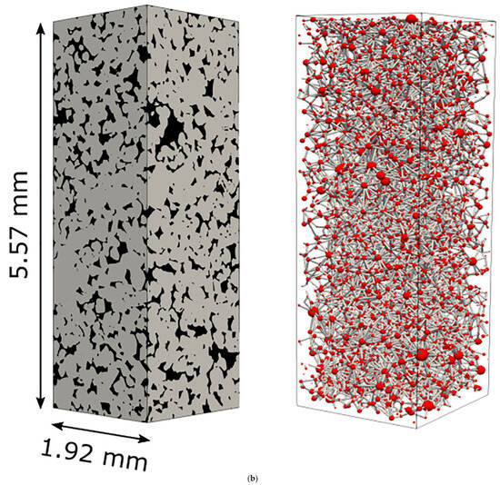 Examples of (a) a random pore bond network (reprinted from [22], Copyright (2017), with permission from Elsevier) and (b) a pore body–throat network extracted from a CXT image [23] (reproduced under Creative Commons Attribution 4.0 licence).