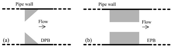 Partial blockage classification: (a) discrete partial blockage (DPB), and (b) extended partial blockage (EPB).