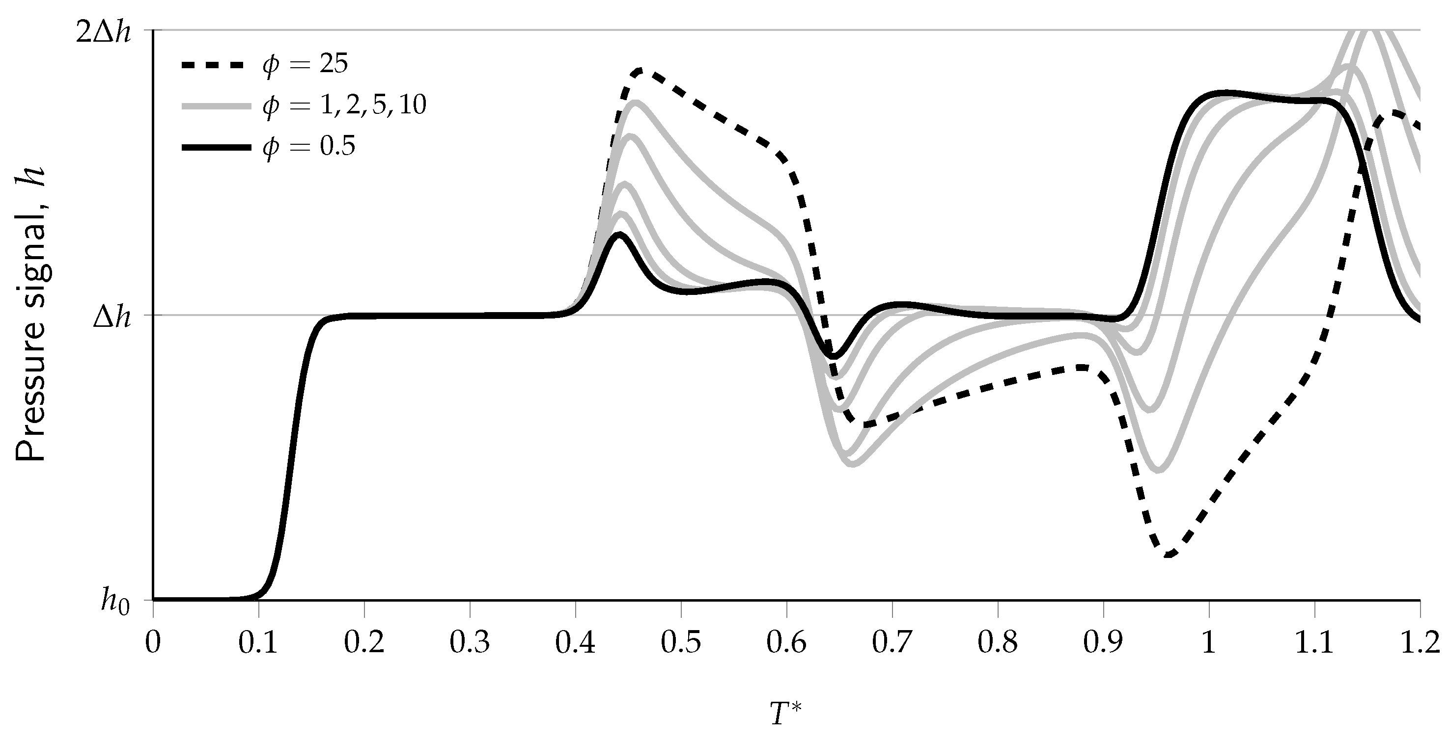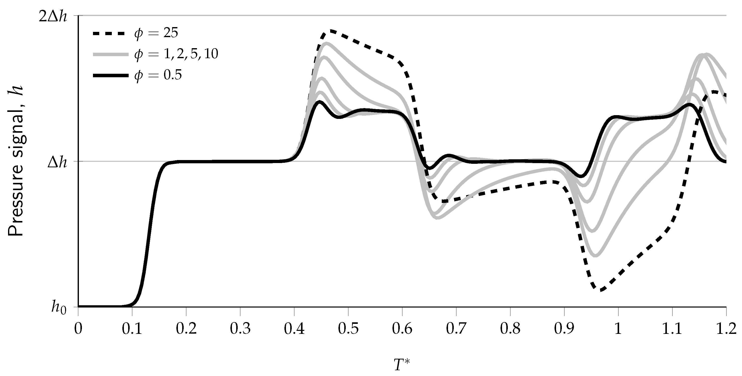 - Brunone, B.; Ferrante, M.; Meniconi, S. Discussion of “Detection of partial blockage in single pipelines” by P. K. Mohapatra, M. H. Chaudhry, A. A. Kassem, and J. Moloo. J. Hydraul. Eng. 2008, 134, 872–874. [Google Scholar] [CrossRef]