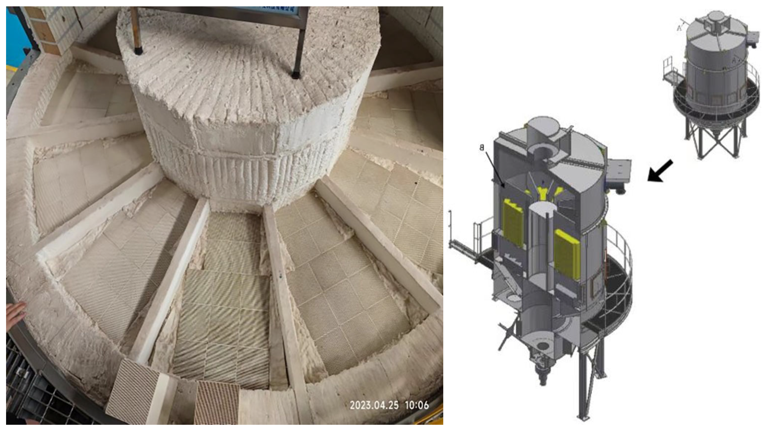 The furnace body adopts a modular square layout (Figure 3), with an effective volume of 2.48 m3. Structurally, the layers are arranged from inside to outside as follows: