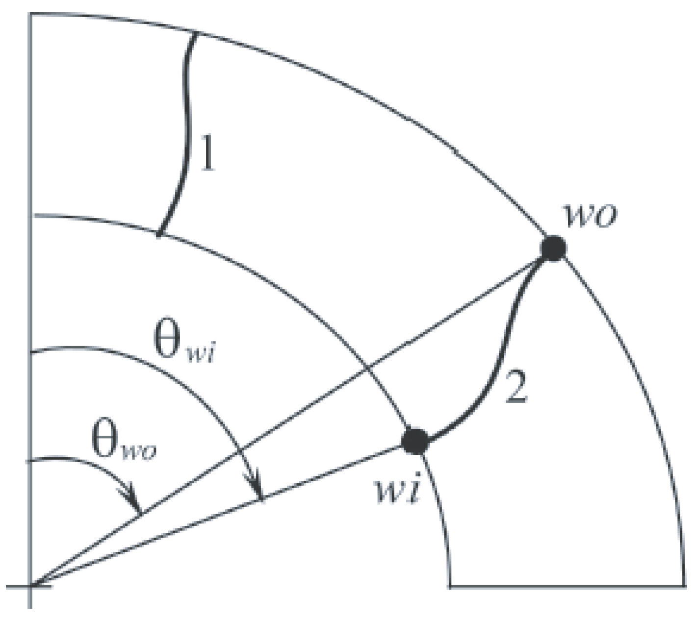a is speed of sound in an undisturbed flow. Shock wave speeds are found in polar coordinates, taking into account the distance traveled by shock waves along inner and outer walls: