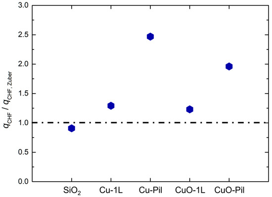 In Figure 10a, the correlation proposed by Zuber [62] (Equation (2)) was used to estimate the theoretical CHF.