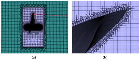 Mesh details: (a) AMI interface refinement. (b) Propeller surface refinement.
