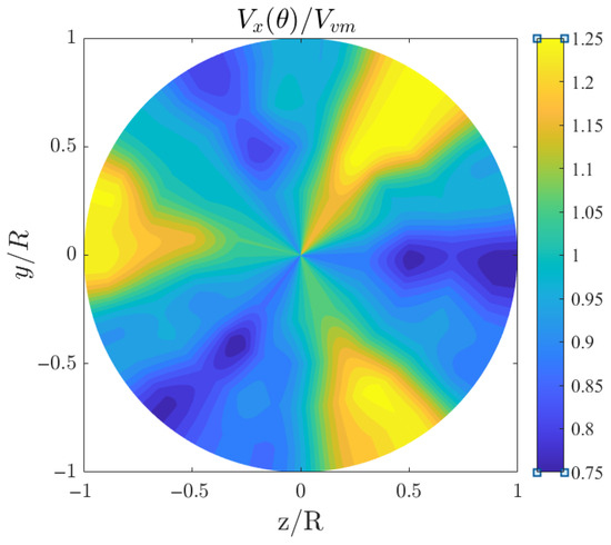 The contour of the inlet velocity obtained by linear interpolation based on the above formula and the values of , A and B is shown in Figure 6.