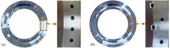 (a) Single-row spray-hole water ring and (b) multi-row spray-hole water ring.