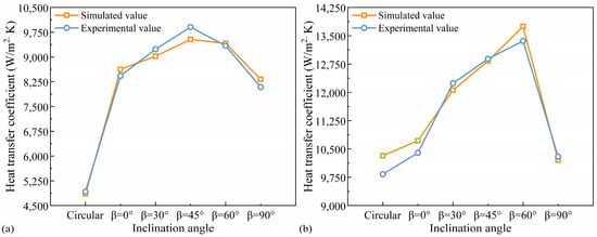where is the heat transfer coefficient obtained through simulation calculation, is the heat transfer coefficient obtained through experimental calculation.