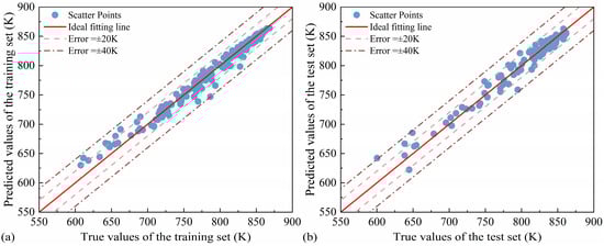 Figure 17 shows the prediction results of the model on the training and testing sets. Overall, the RF model did not produce any significantly erroneous predictions across all datasets. Furthermore, the performance of the RF model on the training and testing sets was consistent, indicating no obvious overfitting.