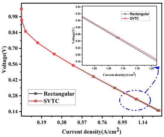 Figure 4. Polarization curve comparison: rectangular vs. SVTC channels.