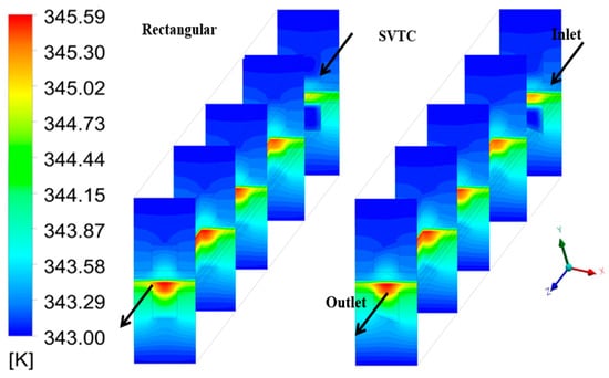 The results presented in Figure 4 and Figure 5 clearly demonstrate the superior performance of the SVTC design compared to the rectangular channel configuration in a PEMFC.