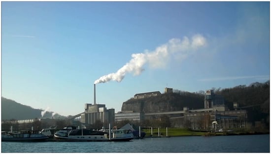 where U [m/s] is the fluid velocity, [m2/s] is the kinematic viscosity of the fluid, and L [m] is characteristic length of the configuration in which or around which the flow takes place, e.g., the diameter of a pipe, the blade-span of a windmill, the length of an airfoil, or the height above the Earth’s surface. Turbulence is known to occur for values of which exceed . For air, is about [m2/s] and for water [10−6]. Many applications involving air are covered by [m] and [m/s]; for water, [m] and [m/s]. In all these cases, , implying turbulent fluid flow. Turbulence is more the rule than the exception. Practical cases of turbulent flow and dispersion are shown in Figure 1, Figure 2 and Figure 3.