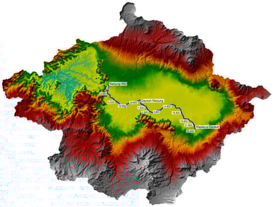 Figure 5 presents the geometry data in the Upper Citarum Watershed. These data were essential for sediment transport analysis. Topographical conditions in the study area are very contoured according to the elevation data of the Upper Citarum Watershed, river cross section, and discharge gauge. The contoured topography can significantly influence the potential land erosion. The interplay between soil types and topography in the Upper Citarum Watershed leads to significant erosion and debris flow into the Citarum River, resulting in sediment accumulation in the Saguling Reservoir.